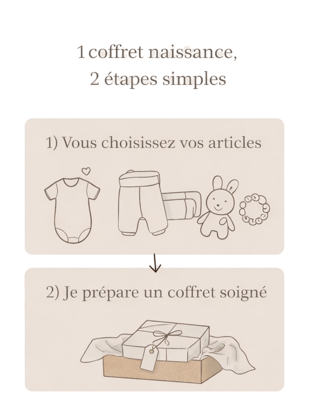 Vous composez votre coffret selon vos besoins et votre budget, sans achats inutiles ni stress. Une alternative accessible pour habiller bébé avec soin.